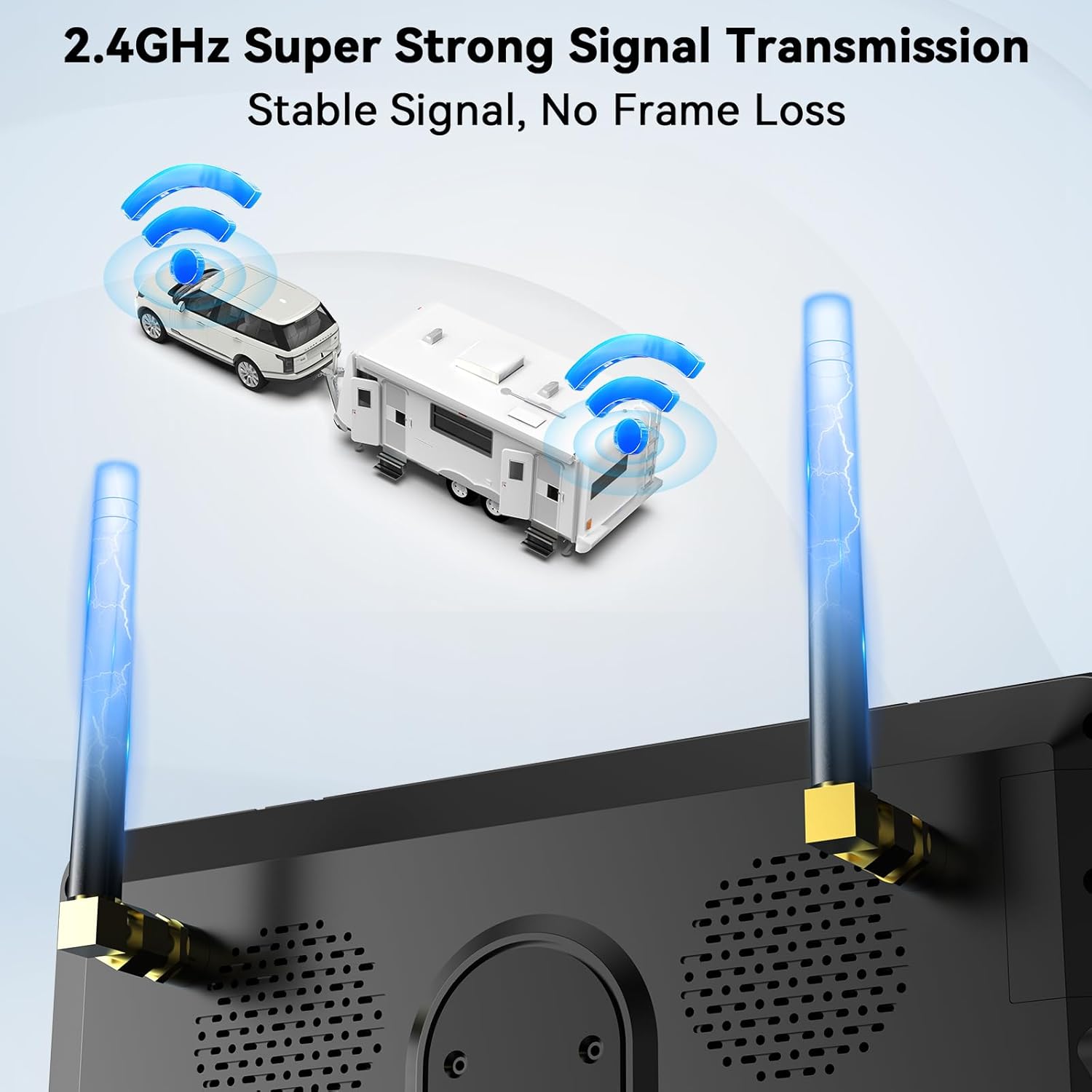 - Dual Antenna for Strong, Stable Signal: With dual antennas, this rv backup camera wireless offers superior signal strength and stability, even in remote areas. 320ft range ensures smooth, uninterrupted performance, so you can rely on your wireless system wherever your adventure takes you.