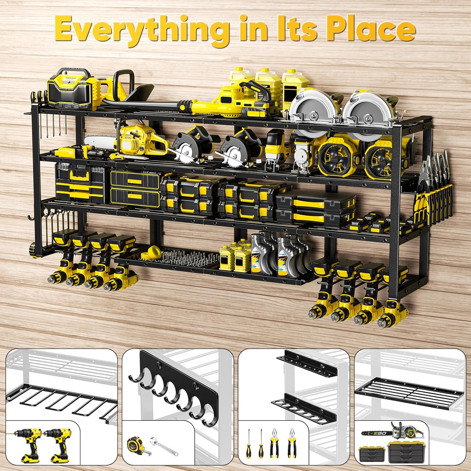 - HEAVY-DUTY & EASY INSTALLATION: Built to last with a robust structure that supports up to 800 pounds. The rack assembles quickly in about 20 minutes using a simple mount-after-assembly method, making this tool holder both hassle-free and sturdy.