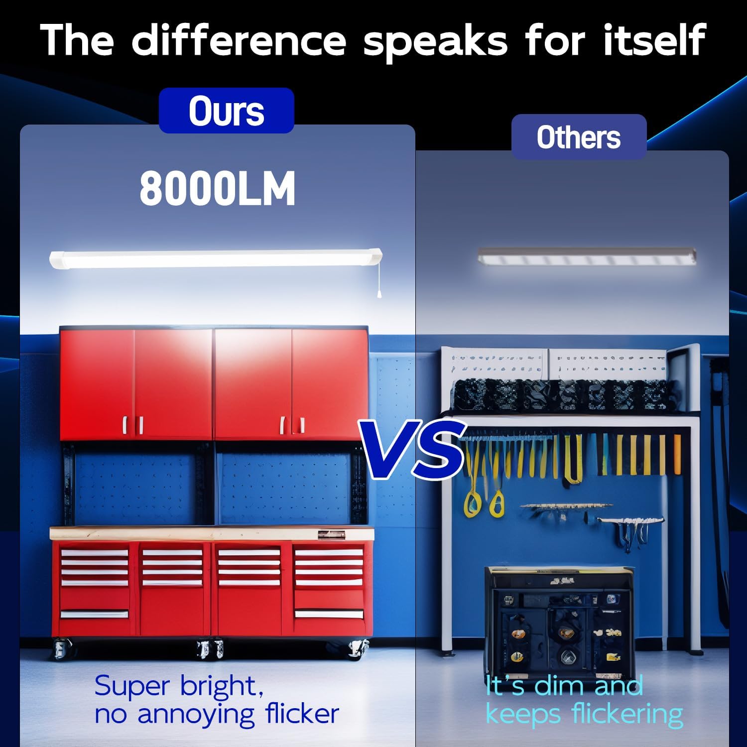 - ✅ Super Bright - Our 4ft utility light fixture feature 8000 lumens brightness at 5000K Daylight White by using only 70W, That is a staggering LED Efficiency of 114 lm/w! Excellent replacement of conventional 300w fluorescent fixture. Energy Savings of up to 70%.