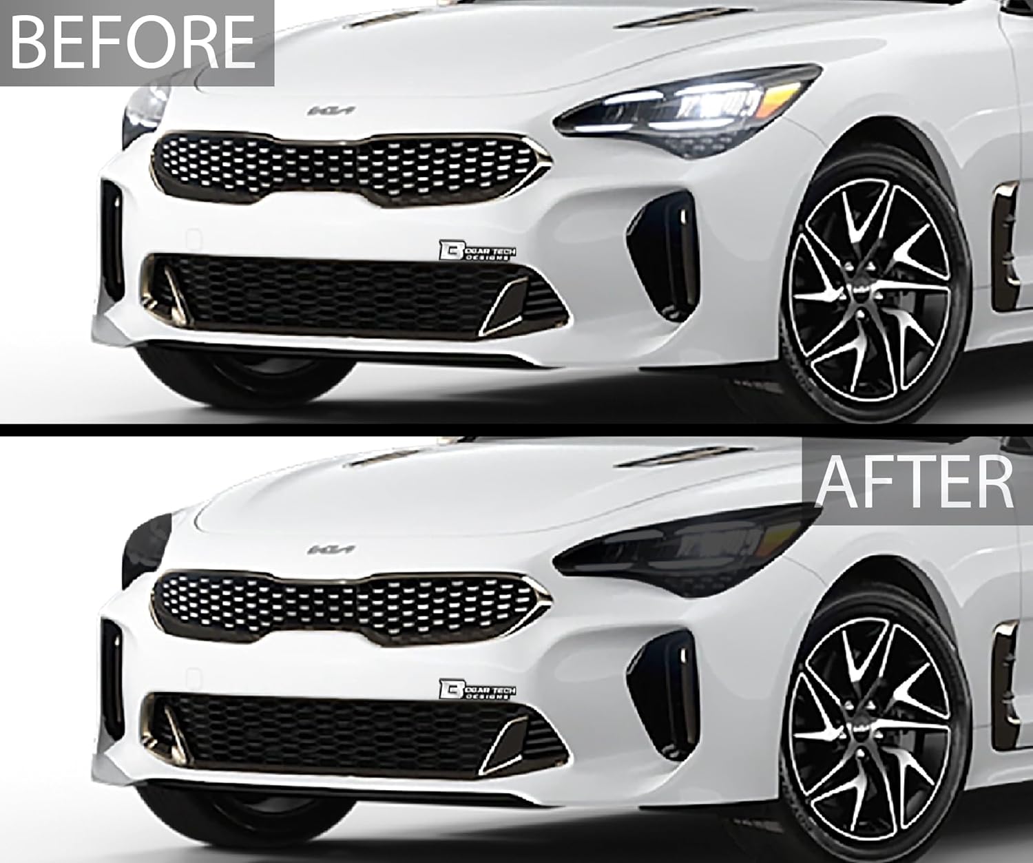 BOGAR TECH DESIGNS Precut for Kia Stinger 2022-2024 Full Headlight Taillight Tint Kit, Dark Smoke