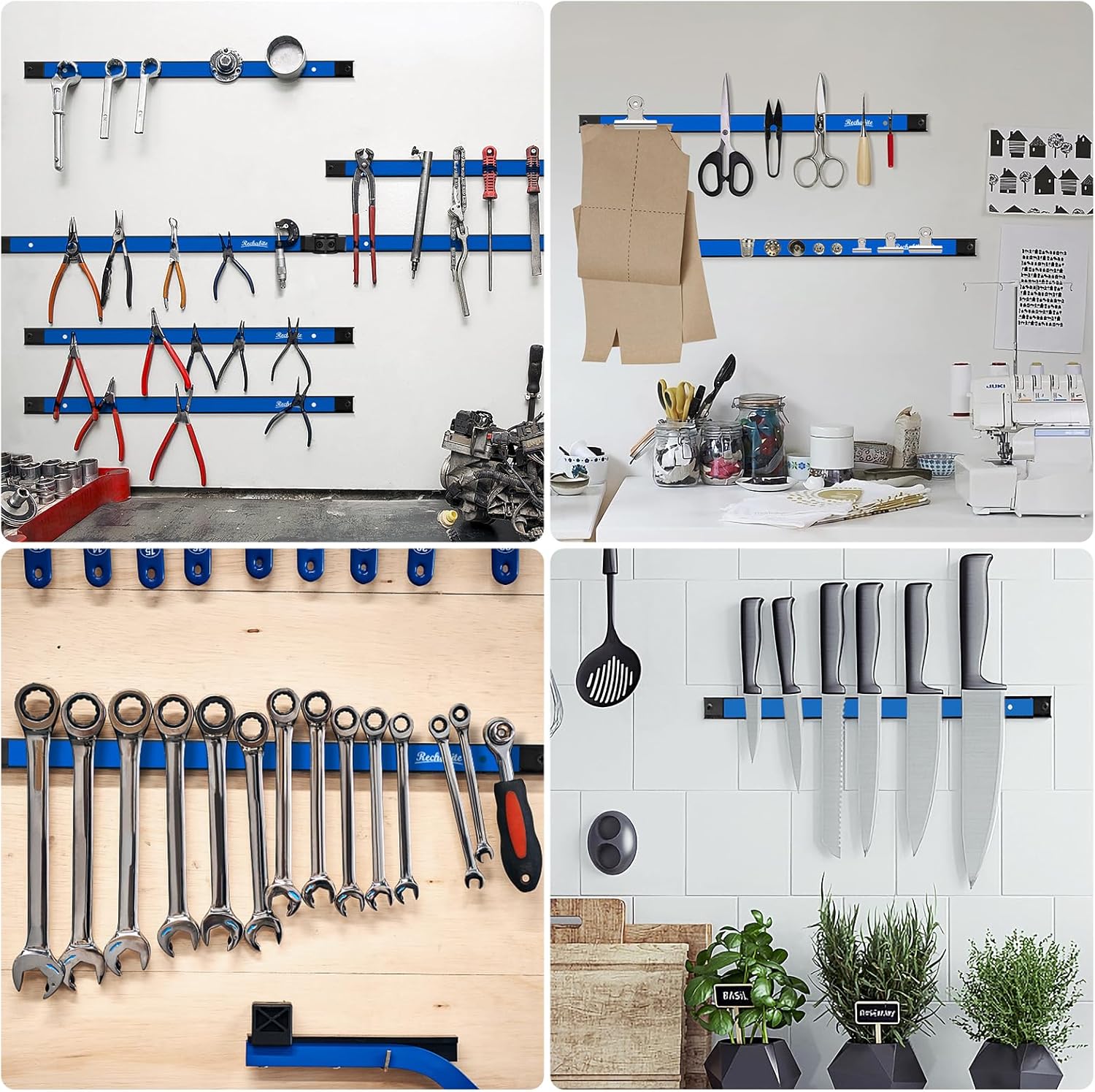 - VERSATILE WORKSHOP ORGANIZER: Clean and get rid of your messy workshop, tool box. The magnetic tool racks can easily organize wrenches, hammers, pliers, screwdrivers, wire cutters, saw blades, etc. Keep your garage, workshop, and also kitchen organized and clean, ensuring all your tools are visible and within reach.