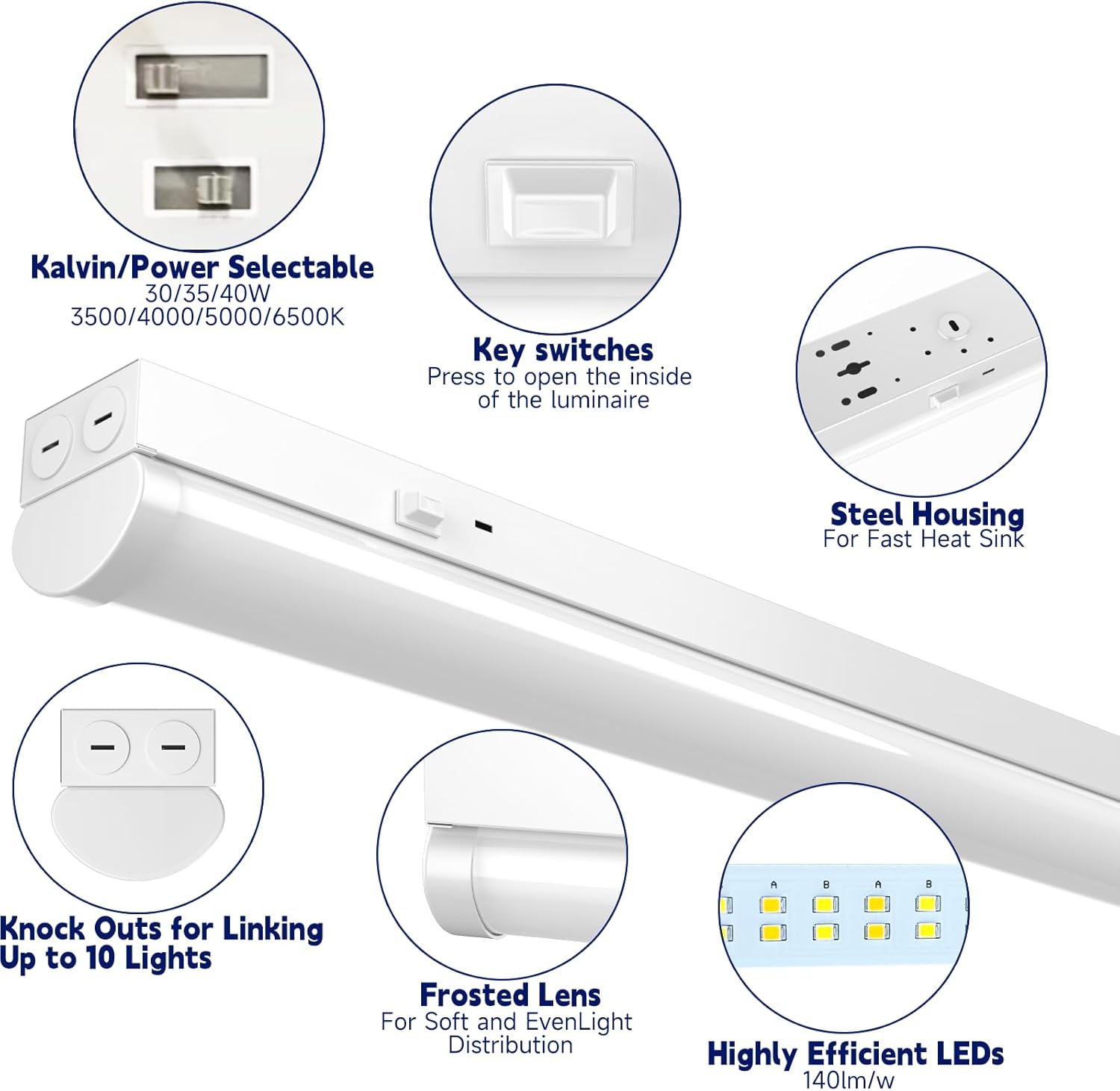 - 【High-Efficiency Illumination】Delivering 5600 lumens at 140 lm/W efficacy, this LED shop light reduces energy costs by up to 85% compared to traditional lighting. Built to last 50,000+ hours, it eliminates bulb replacements.
