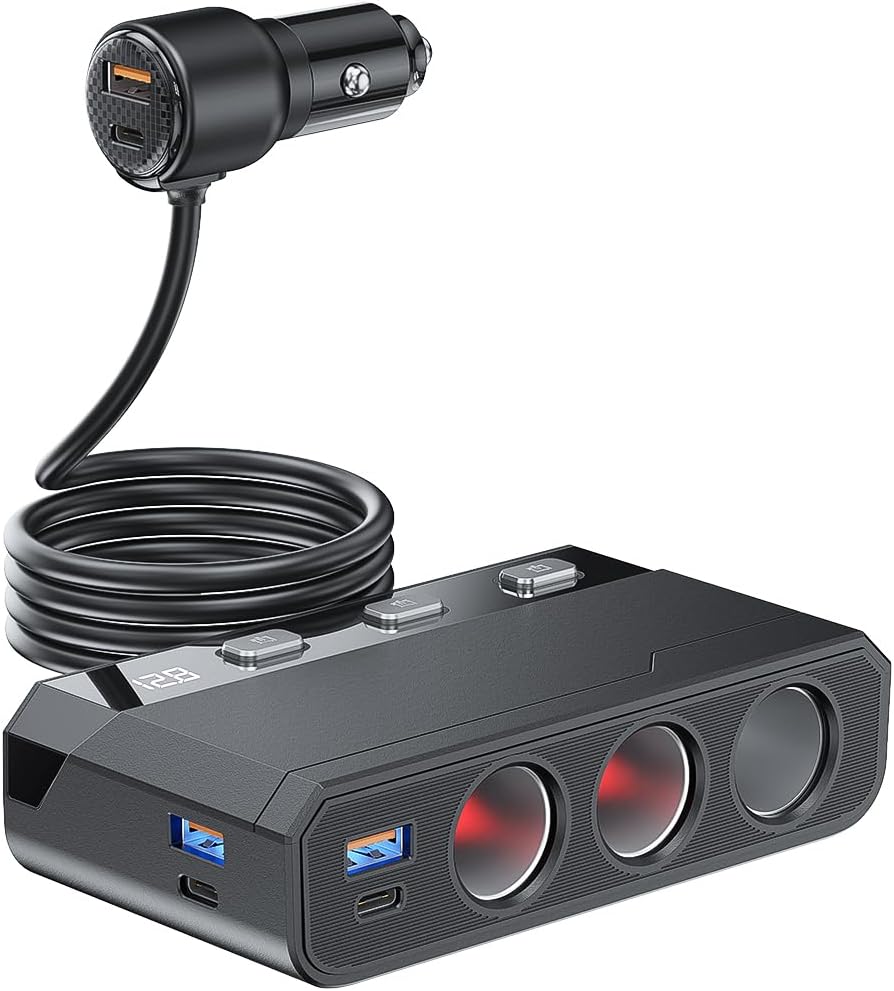 - 【1+3 Smart Switches】No More Unplugging! Say goodbye to constant plugging/unplugging! This car cigarette lighter splitter has 1 master switch + 3 individual switches, saving your car battery and preventing wear. Energy-efficient and hassle-free