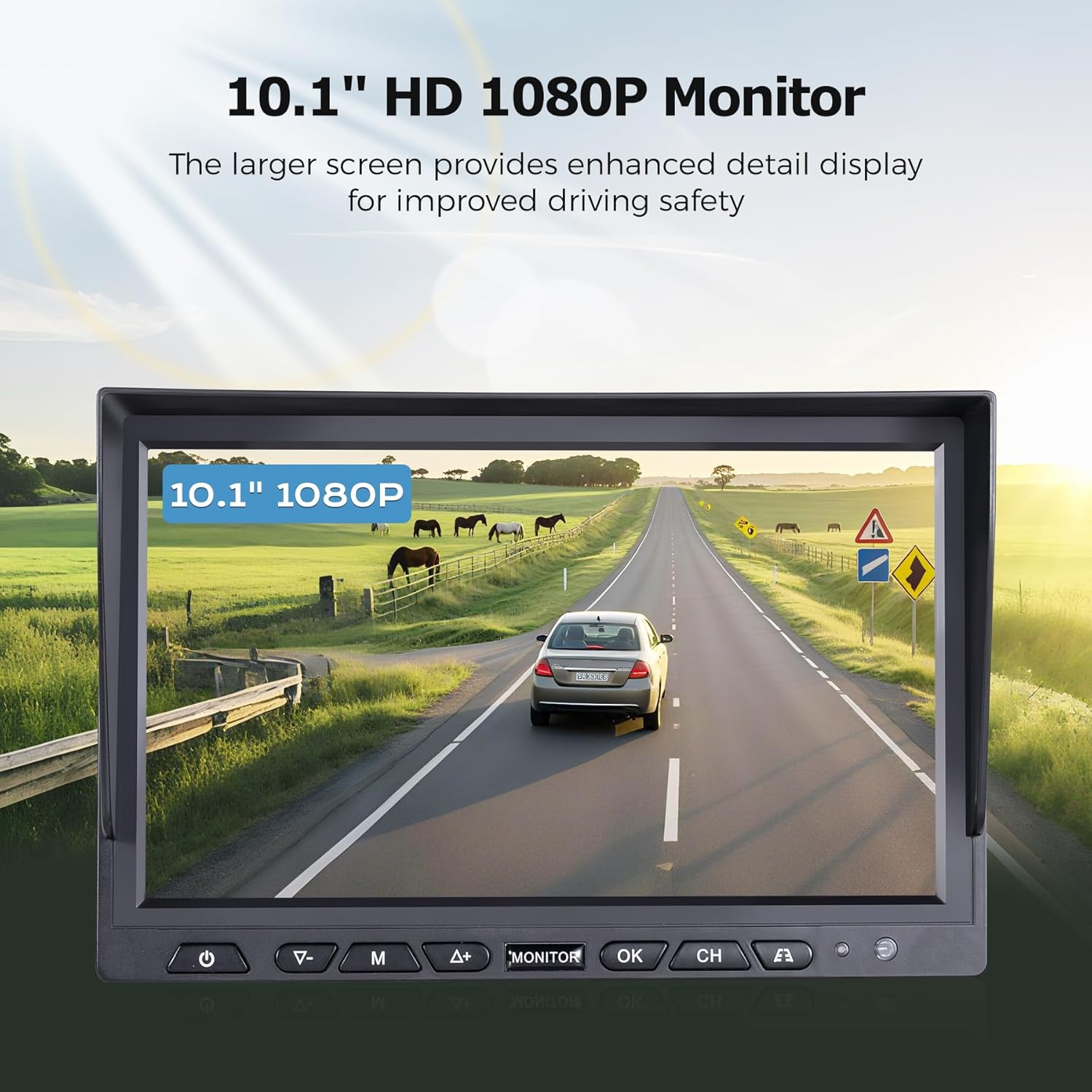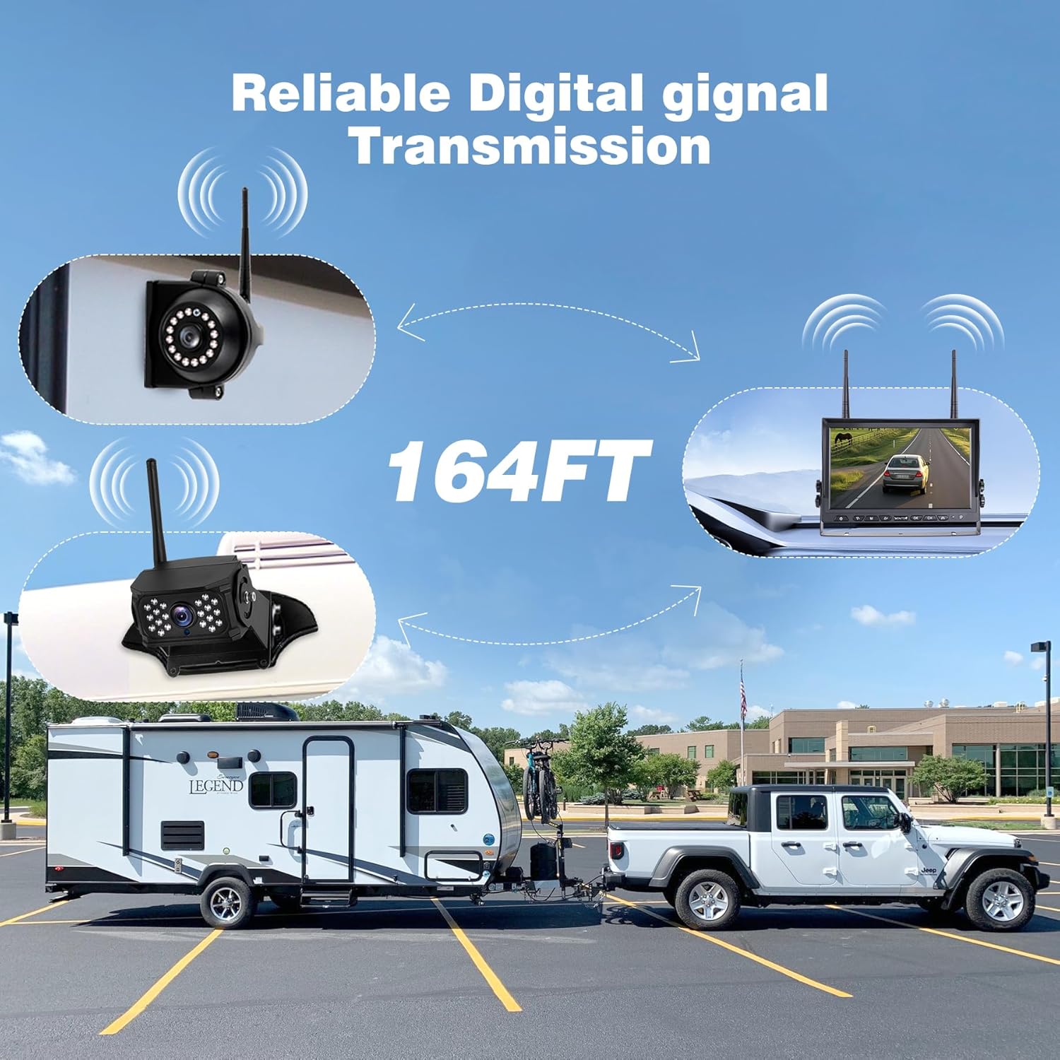 - 【10.1" HD Wireless Backup Camera】 Upgrade your RV safety with this high-quality wireless system featuring a bright 10.1" 1080P monitor. Enjoy crystal-clear HD video for reversing and monitoring, free from Bluetooth or radio interference. The spacious 10.1×6.69 inch screen provides excellent visibility. Weather-resistant and easy to install - the perfect safety solution for your RV or trailer.