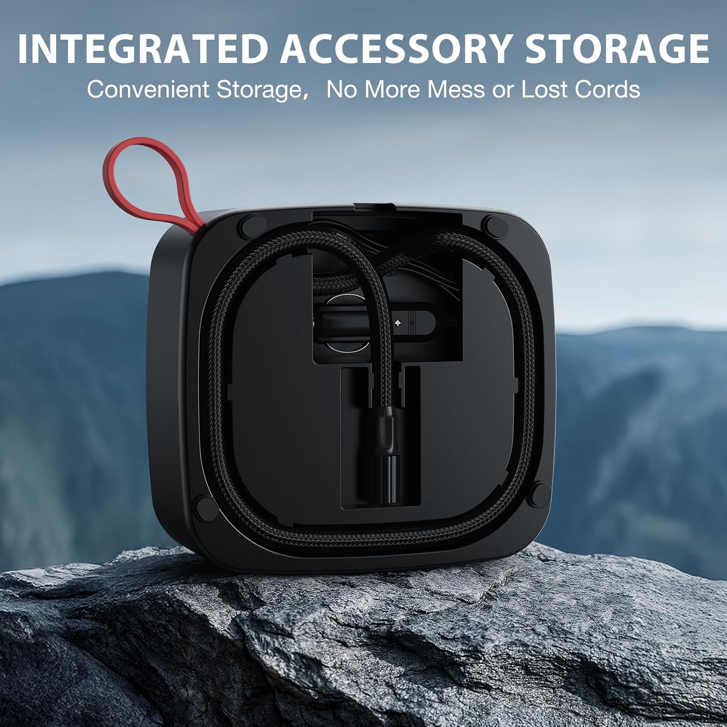 - ULTRA LONG POWER CORD AND COMPACT DESIGN: This car tire inflator is equipped with a 0.5m (1.6 ft) air hose and a 3m (9.8 ft) power cord, making it easy to connect to any tire. The integrated storage compartment on the back facilitates the storage of accessories and makes the tire inflator easier to carry. This convenient design brings a relaxed and easy inflation experience.