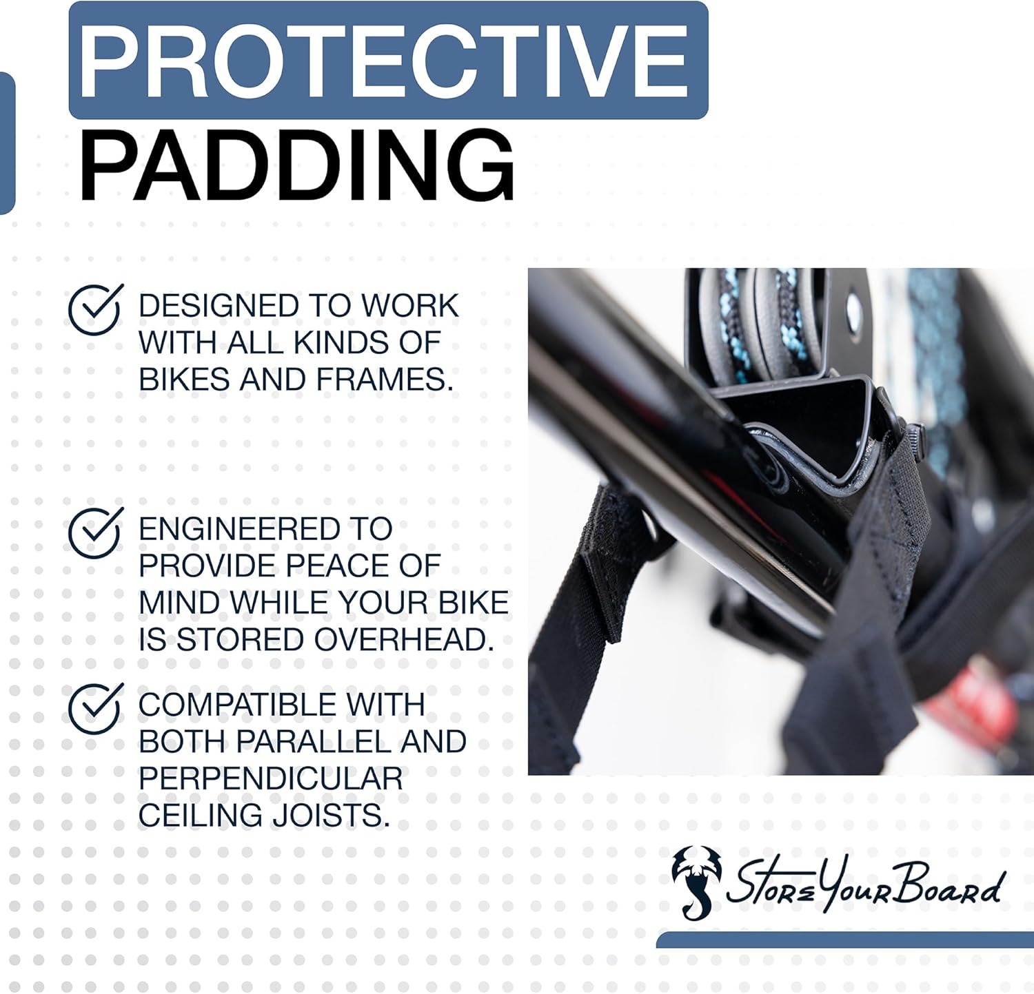 StoreYourBoard Bike Hoist, No-Slip Bicycle Ceiling Storage, Heavy-Duty Garage Pulley Lift System, Road, MTB, Fat Tire, Ebike Hanger