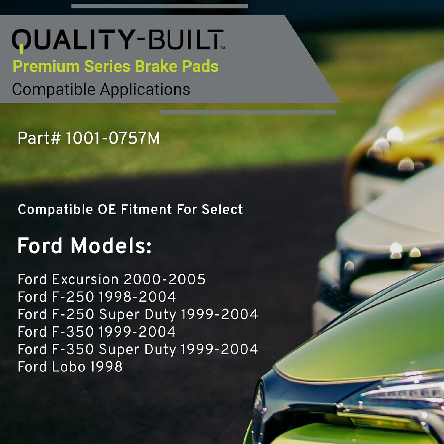Premium Semi-Metallic Rear Brake Pads (1001-0757M) Compatible with Ford Excursion 2005-2000, F-250 2004-1998, F-250 Super Duty 2004-1999, F-350 2004-1999 & More