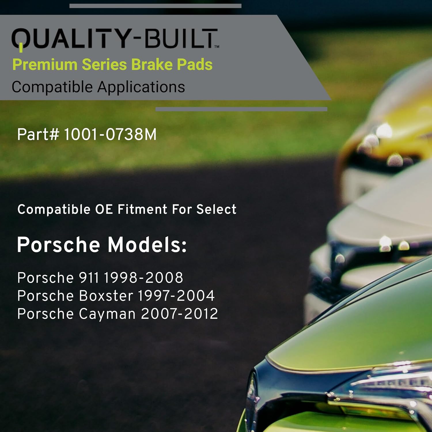 - VEHICLE FITMENT LIST: Porsche 911 2008-1998, Boxster 2004-1997, Cayman 2008-2007, Cayman 2012-2010 (PART#1001-0738M)