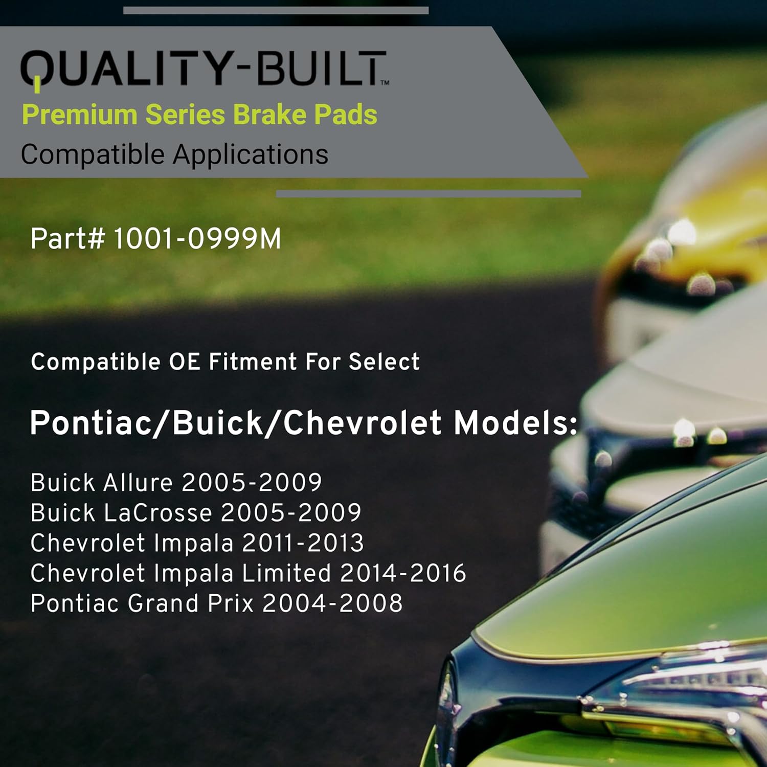 Premium Semi-Metallic Rear Brake Pads (1001-0999M) Compatible with Buick Allure 2009-2005, LaCrosse 2009-2005, Chevrolet Impala 2013-2011, Impala Limited 2016-2014 & More