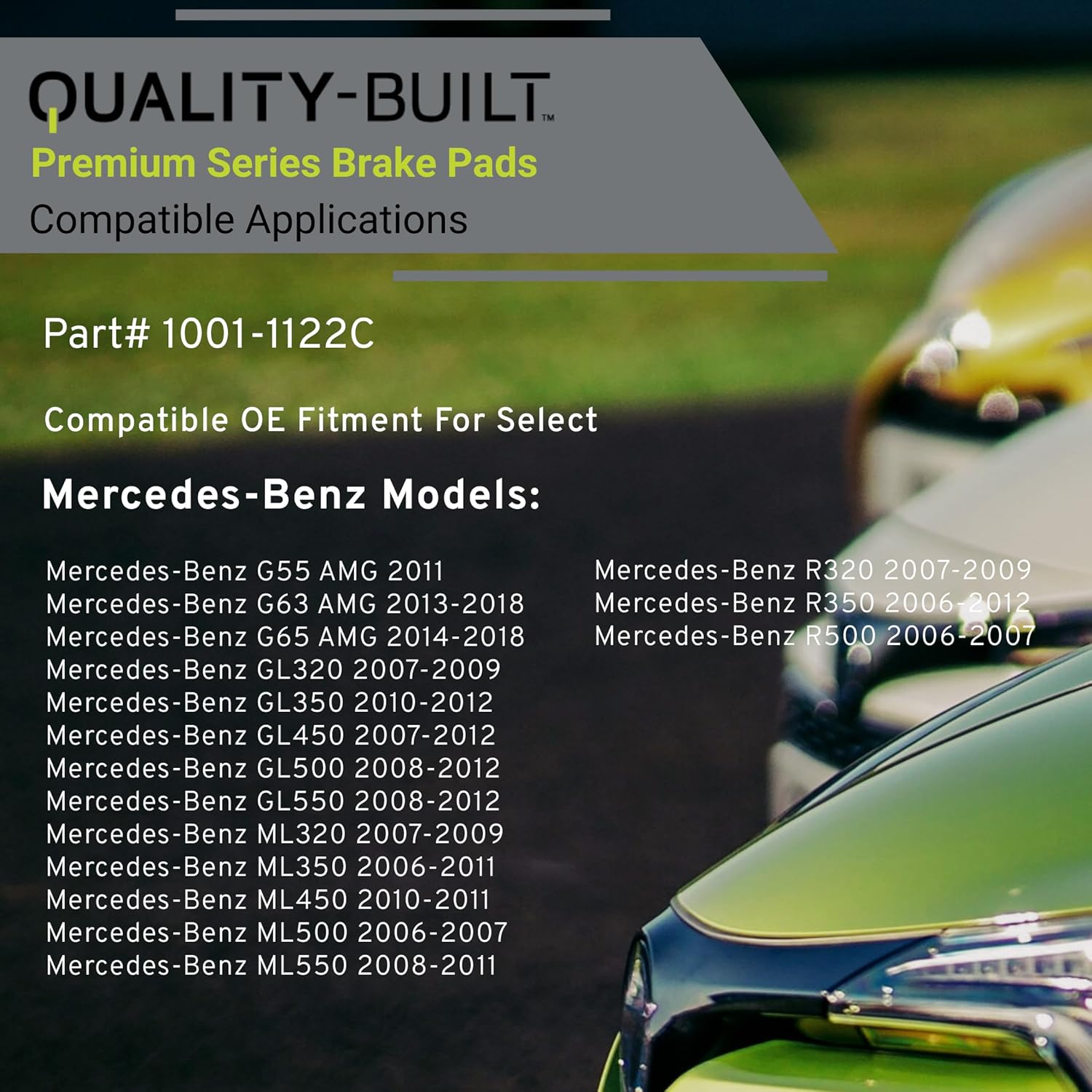 Premium Ceramic Rear Brake Pads (1001-1122C) Compatible with 2006-2018 Mercedes-Benz (G55 AMG/G63 AMG/G65 AMG/GL320/GL350/GL450/GL500/GL550/ML320/ML350/ML450/ML500/ML550/R320/R350/R500)