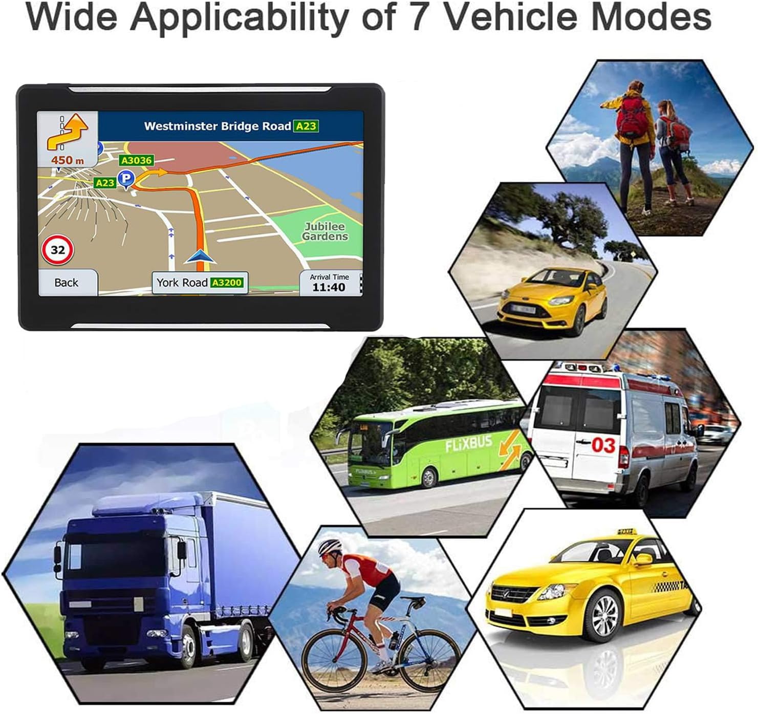 - MAP UPDATE: Preloaded with the latest North American (USA, Canada, Mexico) maps; Plug and Play. In-vehicle GPS for all 12-24V vehicles Supports multiple navigation modes cars, trucks, buses, cabs, bicycles, emergency vehicles, pedestrians, etc., with free permanent map updates
