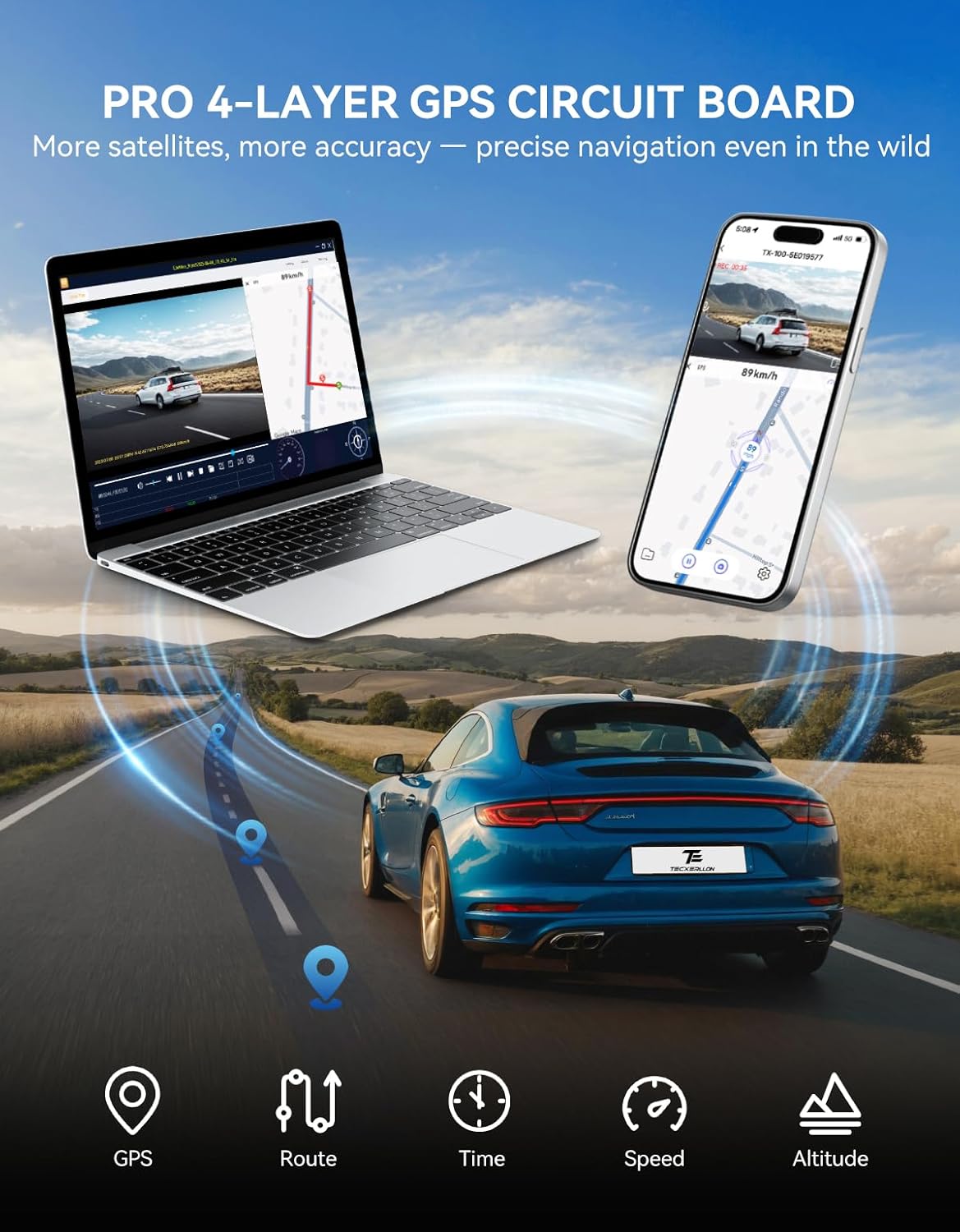 TECXLERON Dash Cam Front and Rear, 4K Dual Dash Cam, Dash Camera for Cars with Starlight Night Vision, 160° Front & 150° Rear Wide Angle, GPS, WDR, G-Sensor, 24H Parking Mode, 64GB Card Included
