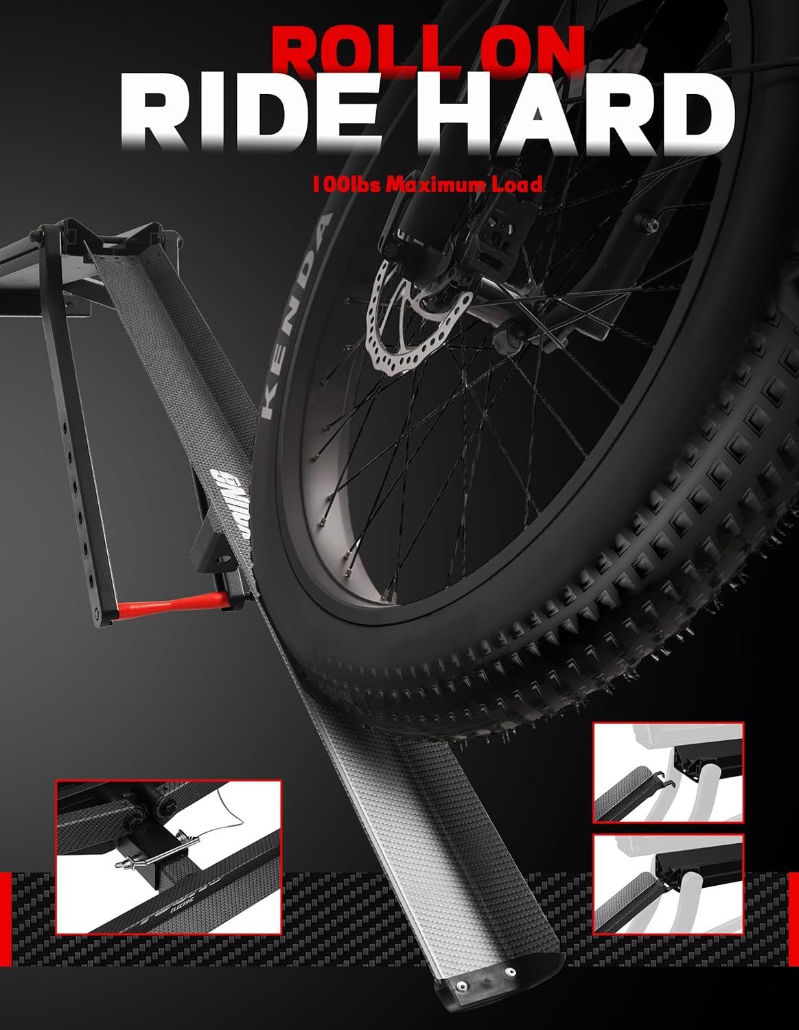 - 【Universal & Protective Design】Patent-pending tire-hold system requires zero frame contact, making it compatible with fat tires (up to 5"), fenders, step-thru frames and carbon fiber bikes. Pressure-Free by Design ensures 100% scratch-free transport for your premium e-bikes.