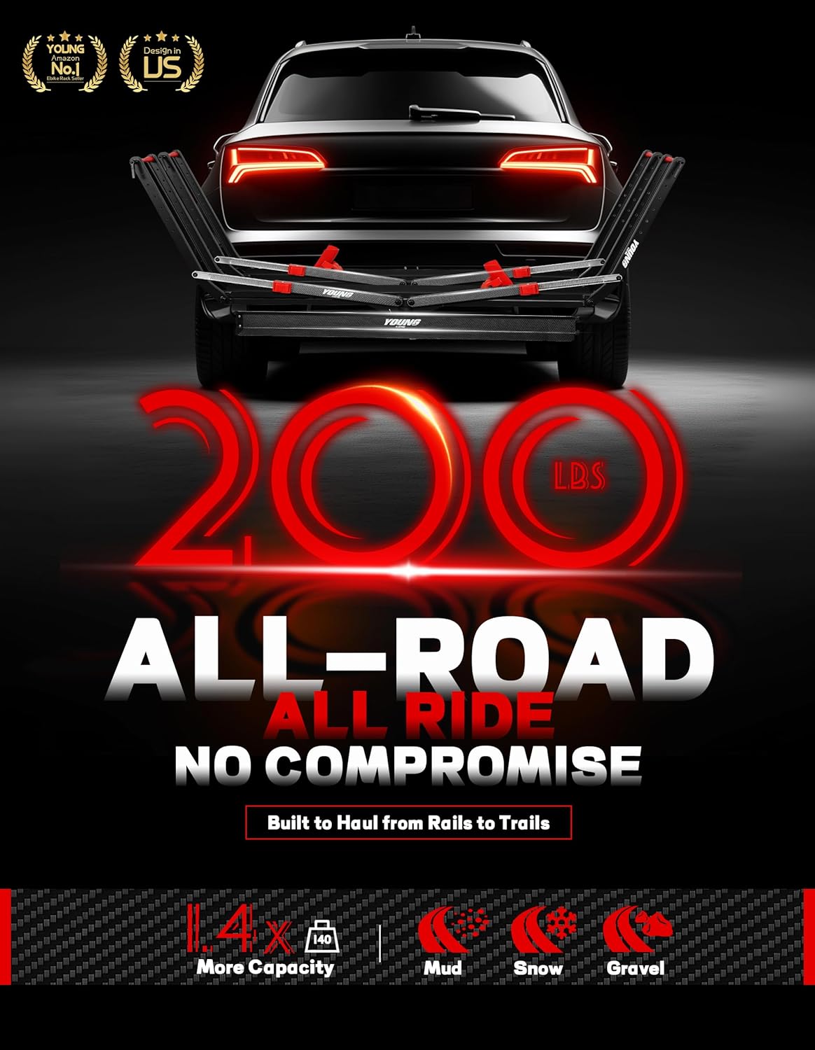 - 【Tri-Lock Stability System】Features three-point reinforced locking mechanism that outperforms standard two-point racks. The overbuilt Off-road first design with advanced anti-wobble technology keeps bikes secure even on bumpy terrain - "Locked by Three. Trusted Anywhere."