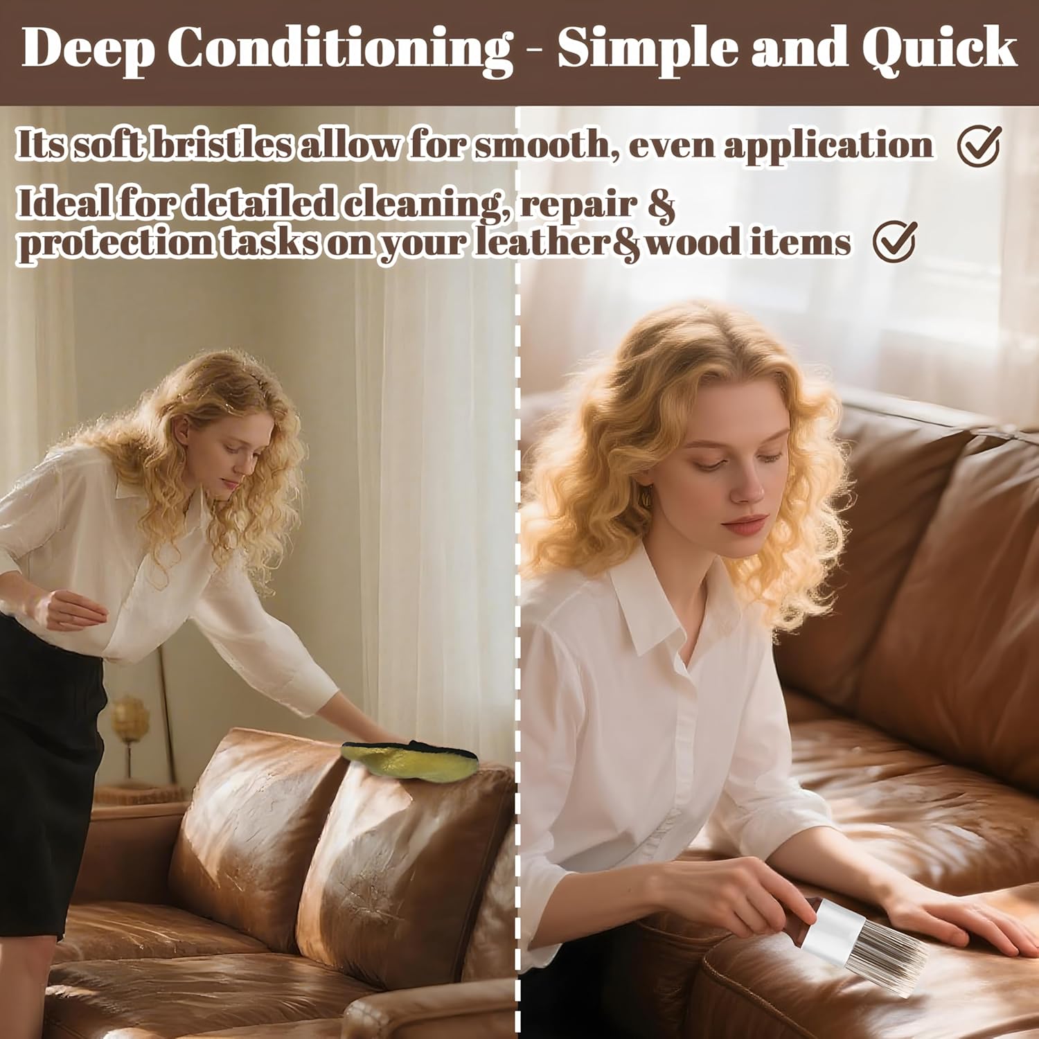 - 【Furniture Wax Brush】The ergonomic design handle ensures a comfortable grip and effortless control. Its soft bristles allow for smooth, even application, making it ideal for detailed cleaning tasks on your leather items