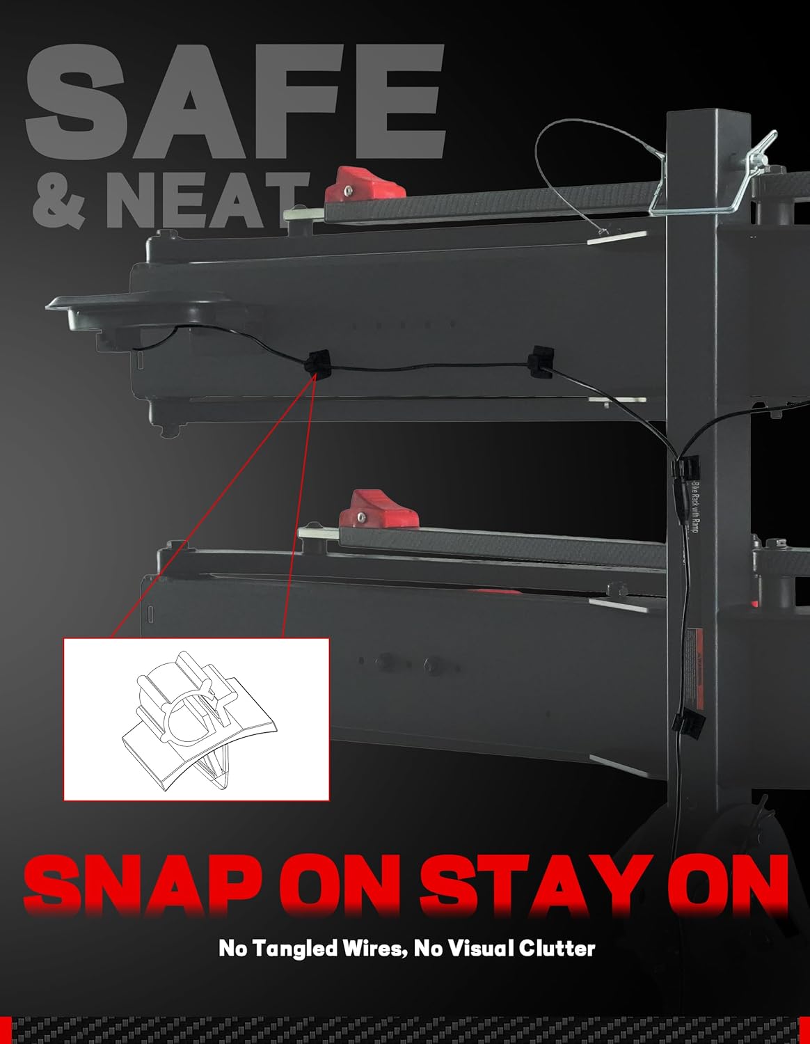 - Stupid-Easy Installation:Seriously, It’s 3 Steps Clip it. Lock it. Go. That’s all it takes to install this light—no tools, no tangled wires, no frustration. For some older racks, however, manual drilling is required as per the instructions. When you’re done, remove it just as easily without damaging your rack. The hidden wiring system keeps everything clean and clutter-free.