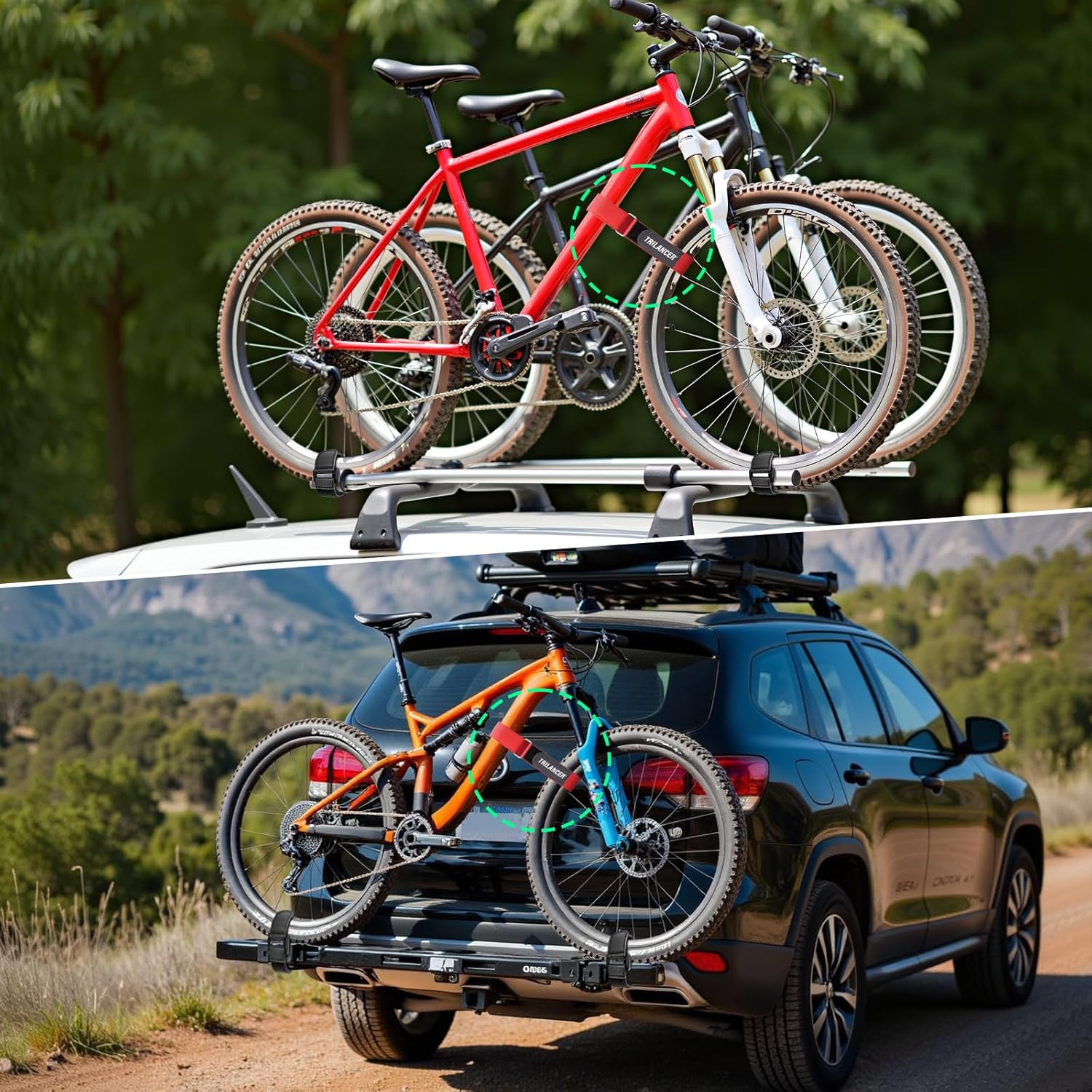 - ✅ 【Not Just for Bikes】This 2-pack does more than secure bikes—use it for yoga mats, camping gear, hoses, cords, skis, snowboards, and more.