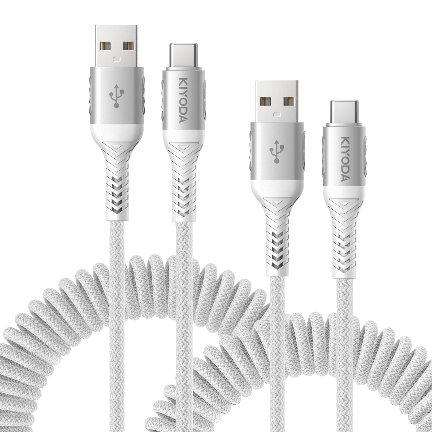 USB A to USB C Cable Fast Charging 66W, 2Pack 3FT Coiled Braided USBC Phone Charger Cables for Car, Short USB to USB Type C Cord for iPhone 16 15 Pro Max, Samsung Galaxy S24 S23 and More-Silver