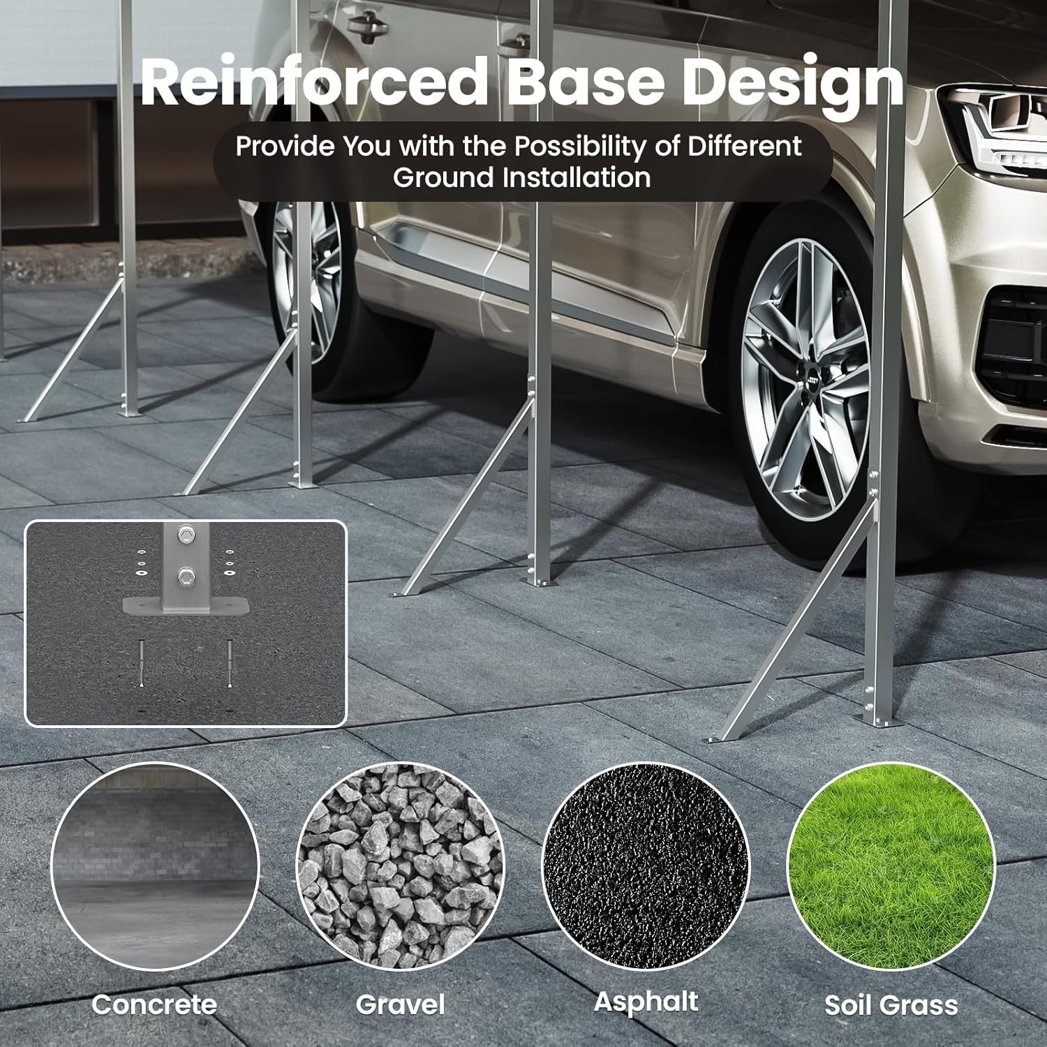 - Durable Steel Construction: This heavy-duty carport is made from premium high-strength steel with a rust-resistant coating to extend its lifespan. It not only withstands harsh outdoor conditions but also provides top-level safety against collapse