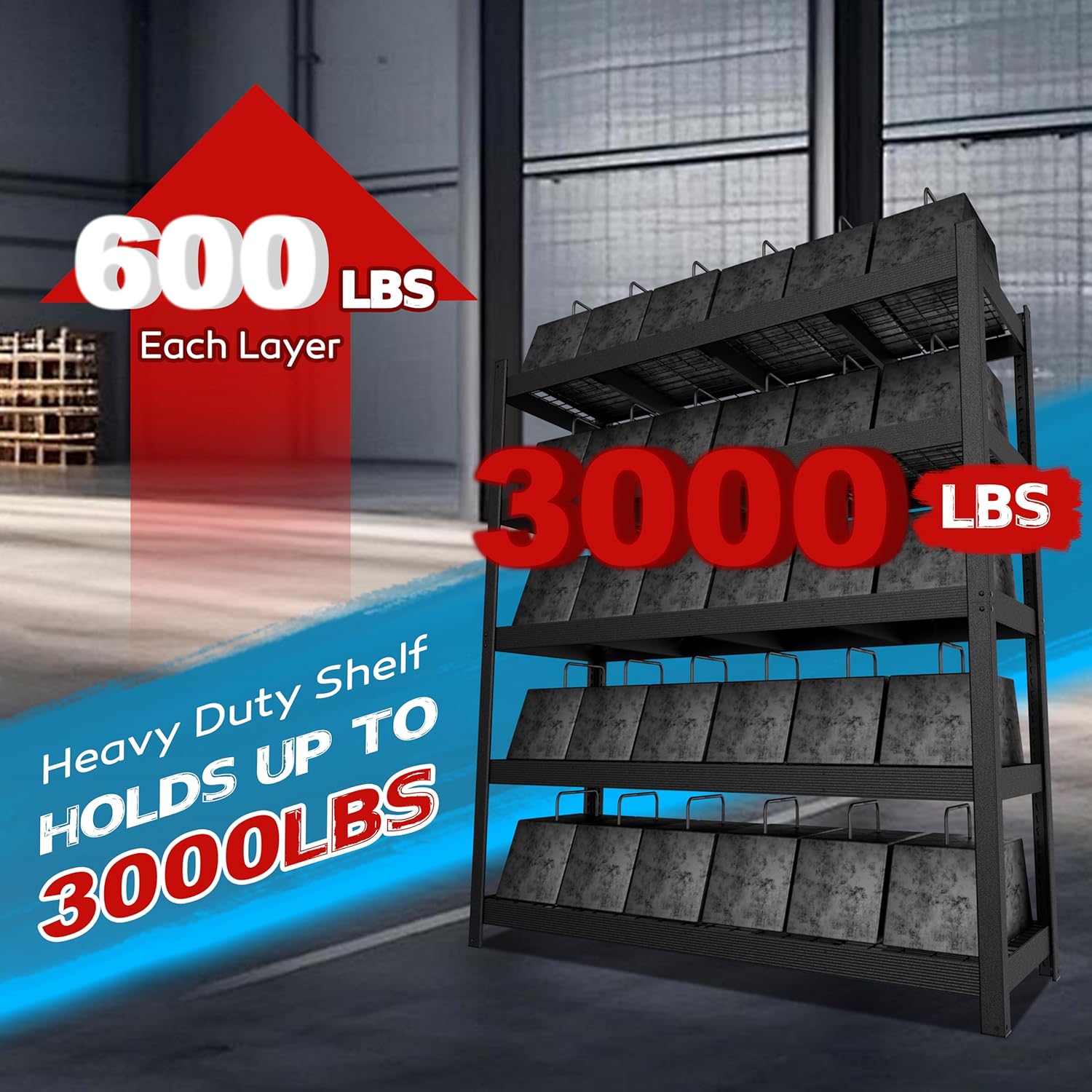 - Sturdy and Heavy Duty – Made of powder-coated heavy-duty metal, this shelving unit is scratch-resistant, rust-proof, and moisture-resistant. With thickened wire shelves and reinforced double columns, it offers excellent stability and durability. Each shelf supports up to 600 lbs, with a total load capacity of 3,000 lbs, making it strong enough for heavy-duty storage.