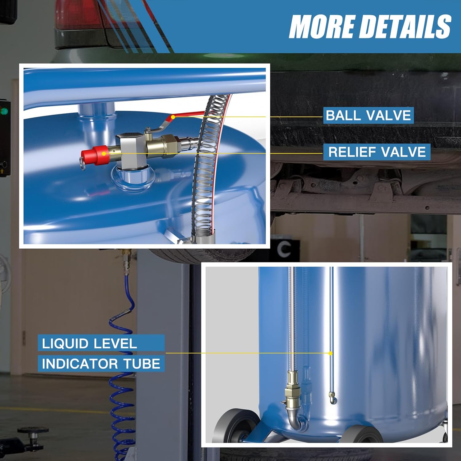 - 【20-Gallon Capacity】LARBANKE oil drain container offers a large 20-gallon capacity, collecting waste oil from 8 to 10 vehicles and enabling highly efficient continuous oil drain operations. Operating on a pneumatic principle, it is well-suited for easy draining, transferring, and emptying of oil and other liquids.